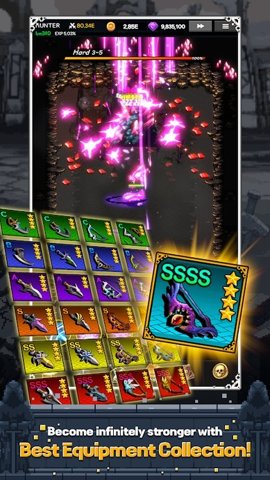 游戏的核心玩法是放置与自动战斗,玩家可以设置猎人自动进行战斗,即使在离线状态下也能继续获得资源。战斗过程中,玩家可以手动控制猎人的技能释放,根据战斗情况灵活应对敌人。同时,游戏中有丰富的装备系统,玩家可以通过打怪和完成任务获得装备,并进行强化和升级,以提升角色的综合战斗力。