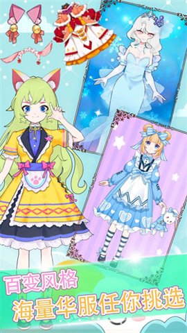 1、这款游戏是一款轻松休闲的装扮模拟游戏,采用了二次元的画面风格。