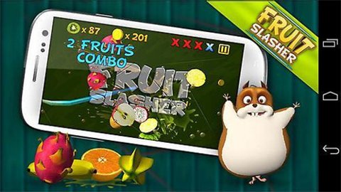 3、玩家只需要滑动屏幕,切开从下方弹出的西瓜、菠萝、香蕉、火龙果、梨子和杨桃等水果,以获取分数。