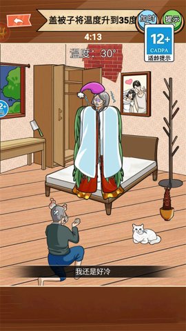 2、除了被子,玩家还可以为老奶奶提供一些保暖的设备。