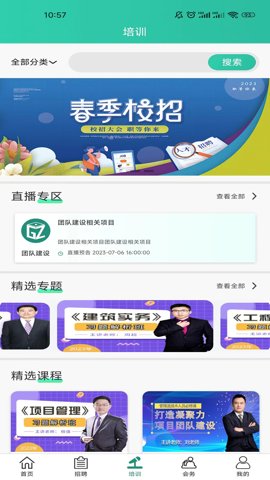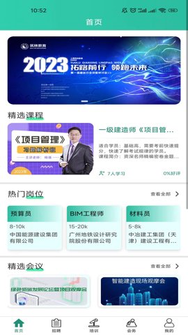 2、除了招聘功能,格筑还提供培训功能,满足建筑从业人员在职业生涯不同阶段对于自我提升的培训需求。