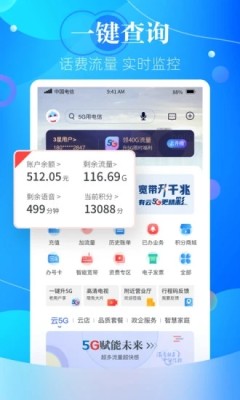 1、登录账户后进入首页,点击流量查询图标查看本月剩余流量。