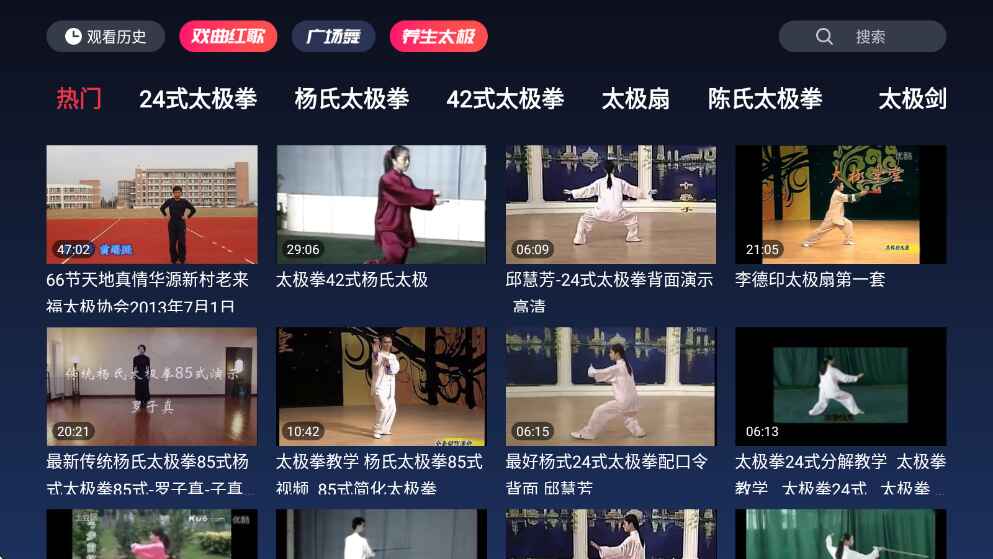 1、丰富的内容分类,涵盖戏剧、广场舞和养生太极等多种类型,满足不同老年人的兴趣。
