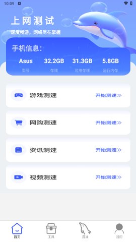 海豚上网不仅支持普通的网络测速,还提供了针对游戏、网购、视频观看等特定场景的测速,确保用户在不同情况下都能获得最佳的网络体验。