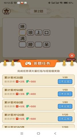 在成语大地主中,玩家的主要任务是根据题目正确拼接成语。每一关都有不同的提示和障碍,玩家需要仔细观察题目,灵活运用成语的多义性来找到答案。拼接成语的过程不仅考验玩家的记忆力,也锻炼了思维能力。随着关卡的推进,题目的难度会逐渐增加,玩家需要不断提升自己的成语水平,才能顺利过关。