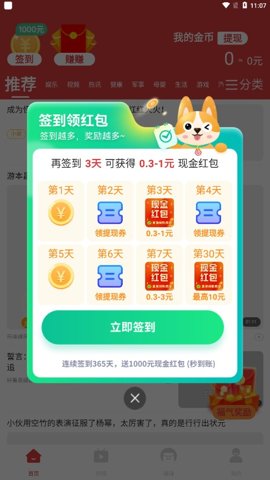 1、签到功能,每日签到即可领取红包,快速积累收益。