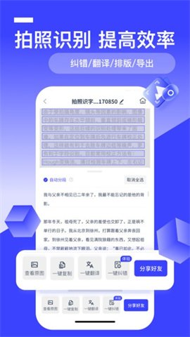 4、使用全能识别王免费版,可以轻松获取图片中的文字内容,并对内容进行编辑,或者一键复制、翻译、纠错、排版等操作。