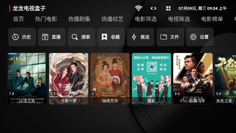 1、打开龙龙电视盒子,进入主界面,您会看到各类影视分类栏目。