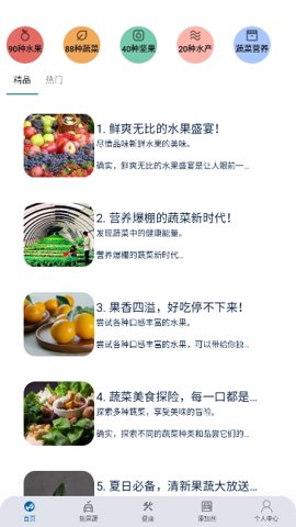 2、定期更新最新的果蔬营养知识,帮助用户及时掌握食材的营养动态,增强饮食知识。