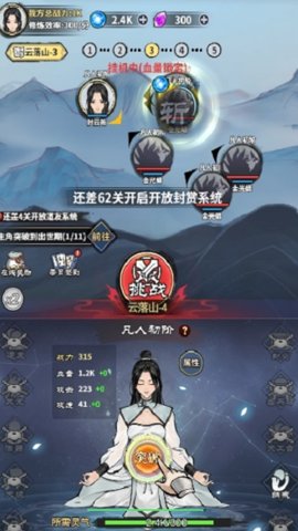在《挂机飞仙》这款趣味挂机修仙模拟小游戏中,玩家将踏上一段充满奇幻与挑战的修仙之旅。游戏的核心玩法是挂机升级,玩家只需轻松放置角色,便能不断获得经验和提升境界,逐步迈向飞升的巅峰。开局时,玩家可以从多个角色中选择一个,角色的属性如攻击、防御和速度等将直接影响战斗表现。在这个古色古香的修仙世界中,玩家不仅能够体验到丰富的放置养成玩法,还能结识道侣,享受修真之路的逍遥自在。通过完成任务、参加活动和副本挑战,玩家可以获取灵石、丹药等资源,逐步提升角色的实力,最终成就无上真仙。