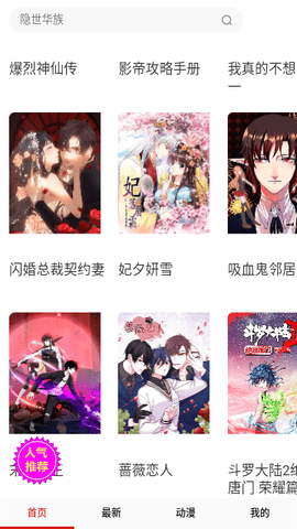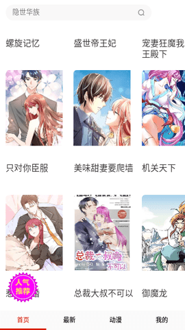 1、下载并安装侠侠漫应用,打开后会看到首页展示的热门漫画推荐。