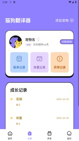 1、支持录音翻译,用户只需按住按钮即可录制宠物声音,软件会自动进行翻译,操作简单直接。