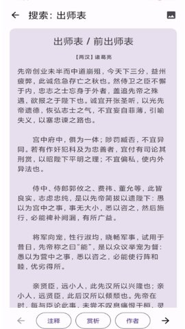 在找到想要的诗词后,点击进入详细页面,即可查看该作品的注释和赏析,帮助您更好地理解其内涵。