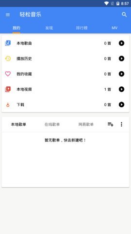 4、想要创建自己的歌单?在主界面点击“我的歌单”,选择“新建歌单”,输入名称后即可开始添加歌曲。