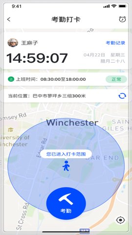 3、电子围栏功能,结合高德地图,确保员工在规定区域内打卡,提升考勤管理的智能化水平。