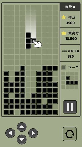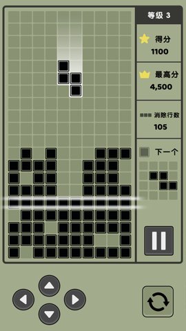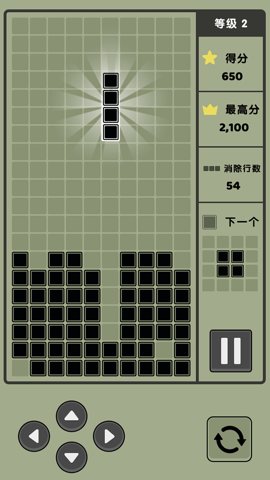 俄罗斯消方块复古版是一款画面黑白复古的经典休闲游戏,玩法更是流传已久的方块消除玩法,玩家需要左右滑动黑色小方块,找到合适的位置插入进去,填满一行即可消除得分。