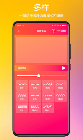 1、软件支持超过10种振动模式,包括独特的智能模式,满足不同场合的需求。