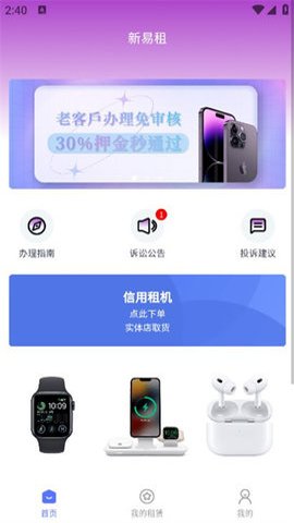 1、下载并安装新易租APP,打开应用后,用户将看到主界面,展示各类数码产品的分类。