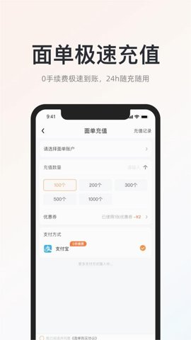4、面单极速充值,商家可通过APP进行面单充值,0手续费,确保资金快速到账,随时可用。