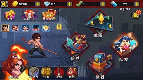 功夫激战3是一款以中国功夫为题材的动作格斗类手游,玩家将扮演不同的角色,通过各种技能和招式与其他玩家进行激战。游戏的核心机制围绕着流畅的战斗体验展开,玩家不仅可以自由组合技能,还能通过连招打出华丽的战斗效果。游戏的目标是通过战斗不断提升角色实力,挑战更强大的对手,最终成为武林高手。