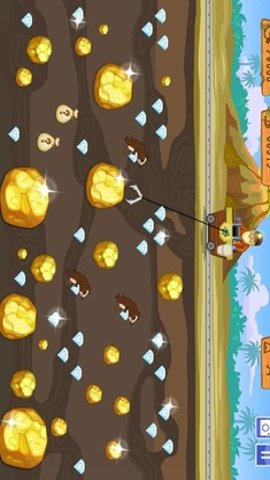 2、玩家通过简单的点击操作,释放爪子去抓取各种矿石,收集金币。