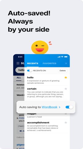 1、智能搜索:通过关键词快速找到想要的词条和例句,节省查找时间,提升学习效率。