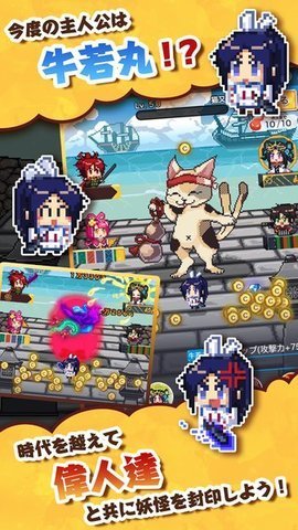 的牛若丸是一款角色扮演游戏,游戏背景设定在神秘的京都,玩家将化身为牛若丸,接受狐狸的委托,展开一段与妖怪斗智斗勇的冒险旅程。游戏以独特的像素风格呈现,玩家的目标是不断打败各种妖怪并将其封印,维护城市的安全与和平。