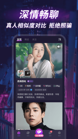 “深聊”这款软件展现出独特的社交魅力,它巧妙融合了同城交友的亲近感与多媒体互动的趣味性,为用户打造了一个既真实又富有创意的交友空间。通过视频聊天、声音分享等多元化交流方式,不仅加深了用户间的了解,还增添了交往的乐趣。