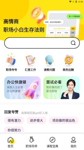 课程内容涵盖了职场沟通、面试技巧、时间管理等多个方面,帮助用户在不同的职场场景中都能游刃有余。