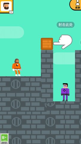 1、每个关卡都设计了多个坏蛋,们站位各异,玩家需要仔细观察并判断最佳路径,让子弹一击打中躲藏的坏蛋。