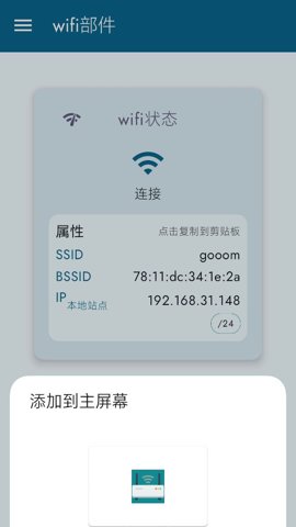 在小部件界面,直接查看SSID、BSSID等信息,点击更多选项可以获取更详细的网络设置。