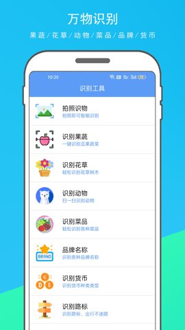 1、这款软件可以说是一款万能的拍照识物软件,用户只需轻轻一扫,便可识别花草树木、动植物、实物、水果蔬菜、货币、品牌名称、红酒、汽车、菜品、路标等各种物体。