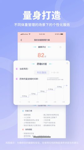 6、个性化体重管理方案,经过全面评测后,制定出符合用户需求的减肥计划,确保减肥效果。