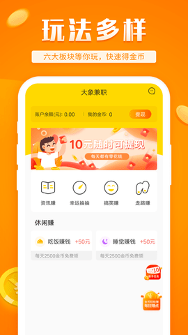 在大象兼职应用中,有各种类型的任务等待用户去完成。无论是新手还是经验丰富的用户,都可以找到适合自己的任务。特别设计的新手任务专为初次使用该应用的用户准备,让他们能够快速上手并了解赚钱的诀窍。还有“走路赚”、“睡觉赚”、“吃饭赚”等任务,用户可以通过日常生活中的小动作来获取额外的收入,让赚钱变得更加轻松和有趣。