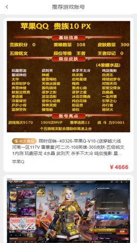 该里面聚集着多种不同的不同类型的王者荣耀账号,每一个平台都有着多种不同段位的,你可以从中清楚的知道该号的段位,英雄数和皮肤数,可以进行更好的选择,而且十分具有公平性,也十分的正规,付钱就可以轻松玩耍,...