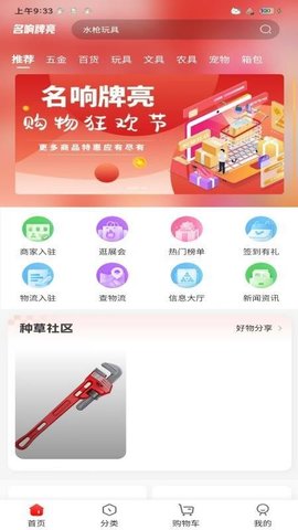 2、如果不确定具体商品名,可以滑动首页找到分类入口,点击进入后选择农具或箱包等大类,再逐步筛选更细的子类别。