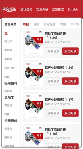 6、综合服务,阿拉丁咨询为铝产业链提供全面的服务,方便地在线获取所需的信息和服务。