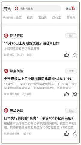 阿拉丁咨询app是一款专注于铝产业链的大宗商品交易平台,它将行业资讯、信息咨询和现货电子交易服务完美结合。随时随地获取最新的行业动态,了解铝产品的市场行情,甚至进行在线交易。通过阿拉丁咨询app,用户不仅能够获得丰富的信息资源,还能享受到专业的服务体验,真正实现了信息与交易的无缝对接。