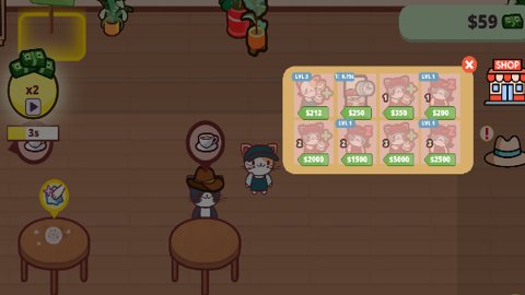 在经营过程中,玩家还可以通过点击右侧的商铺,解锁新的猫咪员工。每只猫咪都有不同的技能,能够帮助提高咖啡厅的运营效率。玩家需要合理安排猫咪的工作,确保每位顾客都能得到良好的服务。同时,游戏也提供了丰富的装饰选项,玩家可以通过点击帽子解锁各种装饰物,为猫咪员工增添个性化的外观。