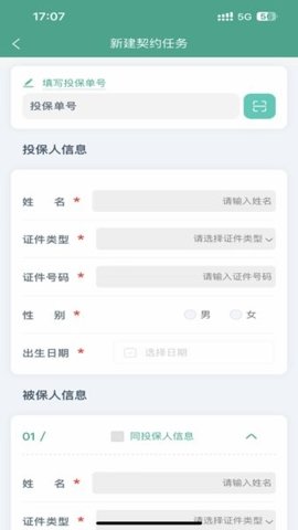 2、在线新建任务,填写投保人和被保人的信息,并实时查看办理进度。