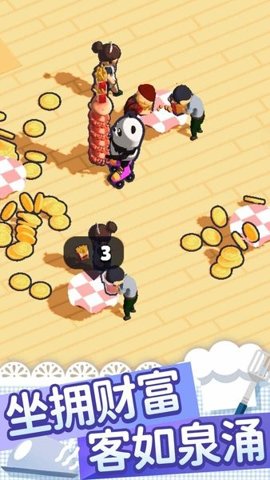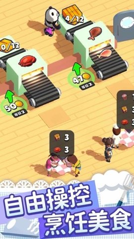 3、玩家需要合理分配资金,建造升级设备,提升能力,雇佣员工,实现金币自由,成为美食大亨。