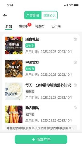 4、适合食堂用户使用,食堂的员工可以在手机上进行厨房设备的管理,发布最新的食堂公示,遵守详细的食品安全制度,可以在线管理食堂的广告,提升了食堂的整体管理水平。