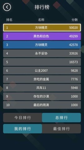 3、十字方块游戏内置排行榜,方便玩家查看个人排名和成就。