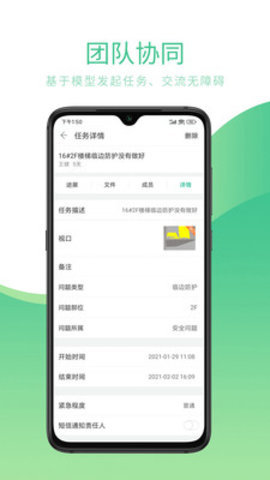 移动办公与协同管理:支持移动端模型轻量化查看功能,并可以在移动端采集现场信息。提供了基于模型的协同功能,支持基于模型发起协同任务,并添加质量、安全、进度等信息,实现项目成员间的即时沟通与高效合作。