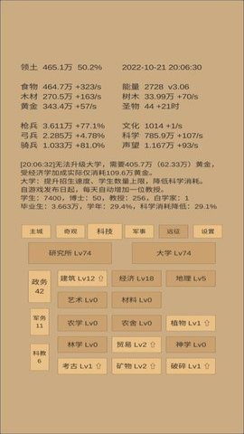 教育:增加博士上限,必点,至少保证博士不到上限。可以加科技,最高不超过大学等级除以5。不用点太多。(博士是可以减少升级的科技消耗的)