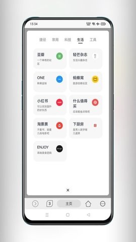 2、EC浏览器的极速、极简风格的主页满足用户快速搜索的需求,没有广告、推送和过度新闻,大大节省了用户的上网流量,节省了手机内存资源。