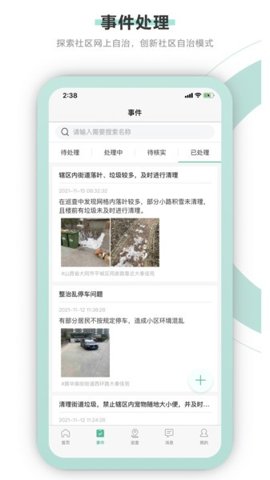 1、事件处理功能,支持用户快速记录和处理社区内发生的各类事件,确保信息及时更新。