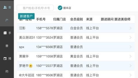 2、门店端可以在手机上新建客户信息,查看门店的会员数、员工数、房间数以及在售的项目数,可以查看详细的业绩数据报表以及客户报表,门店经营数据一目了然。