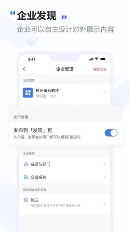 3、在萤石易联平台上,各个企业可以汇聚信息,自主设计对外展示内容,展示企业的特长优势,快速获取客户信任。
