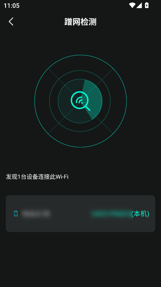 4、在工具箱页面选择蹭网检测,程序会分析路由器后台,列出所有正在使用该Wi-Fi的设备列表,标记出陌生设备。